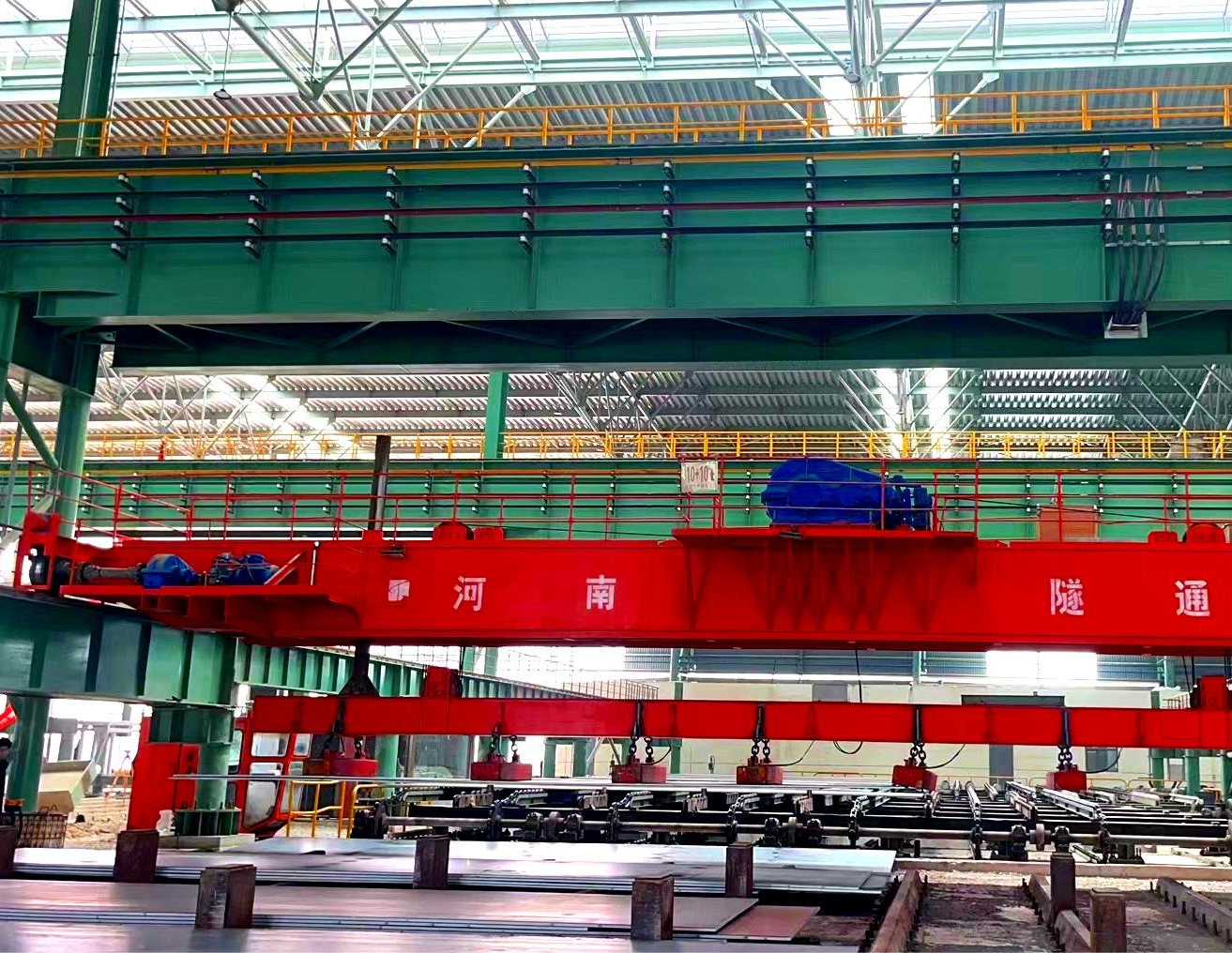 QE型通用橋式起重機依據GB/T14405-2011標準所設計、制造.該型號起重機是在QD型起重機基礎上設有兩臺起重小車,其可以單獨工作,也可以聯臺動作,適用于工礦企業車間及鐵路、港口碼頭等貨場吊運長件物品。
